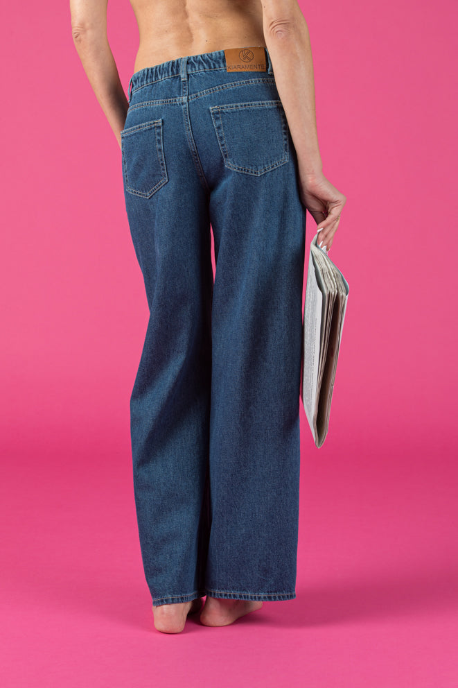 JEANS A PALAZZO IN DENIM CON COMODO ELASTICO SUL RETRO, PERFETTO PER UN LOOK MODERNO E SUPER CONFORTEVOLE.